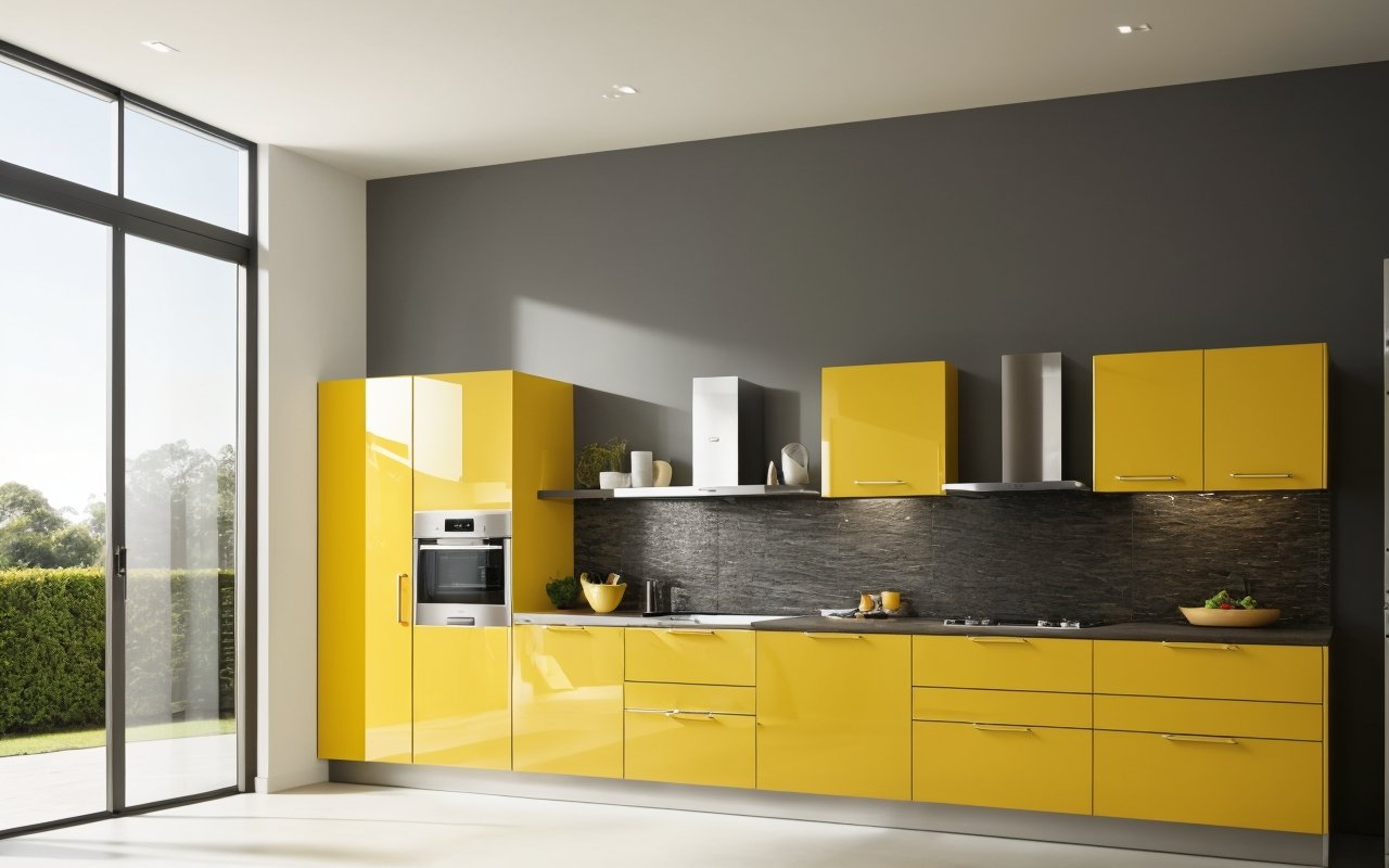 Популярны современные ламинаты, технологичные композиты, стекло, нержавеющая сталь и высококачественный МДФ, которые сочетают долговечность, эстетическую привлекательность и экологичность.